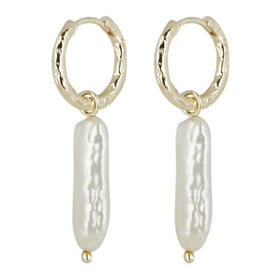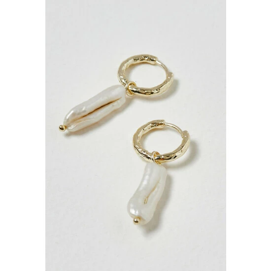 Oliver Bonas Adria White Long Pearl Gold Plated Hoop Earrings