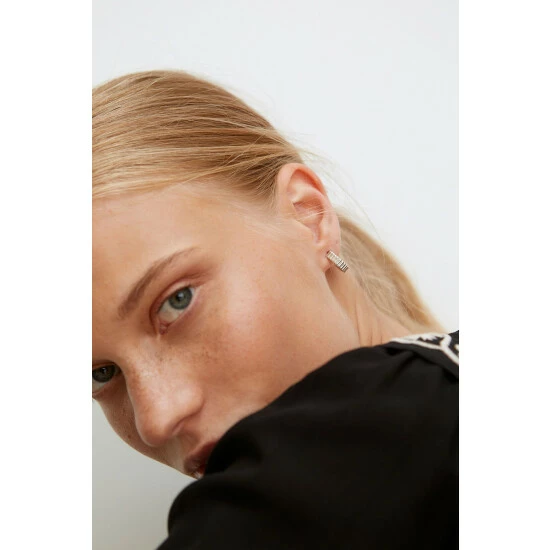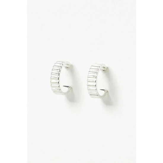 Oliver Bonas Aleena Ribbed Texture Statement Silver Plated Hoop Earrings