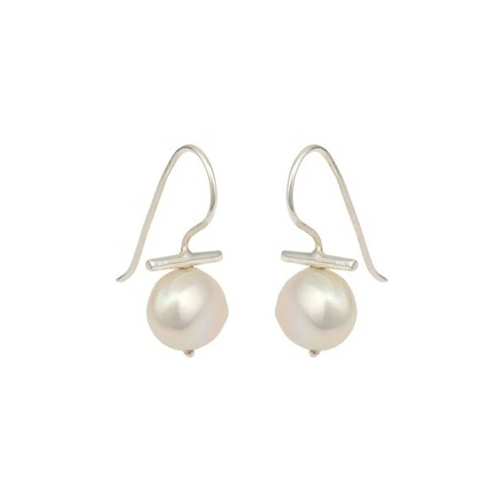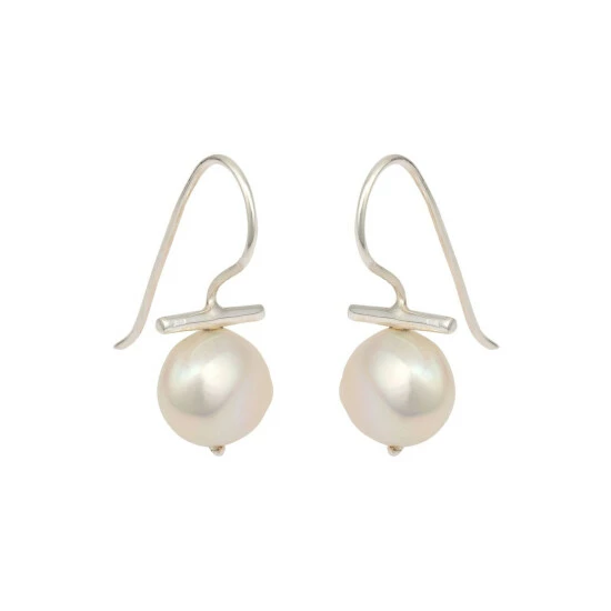 Elegant yet striking, these dainty drop earrings feature silver 925 hooks anchored by horizontal bars and large freshwater pearls.