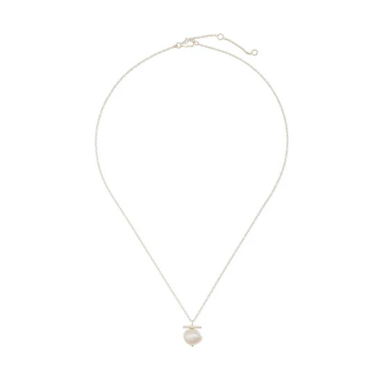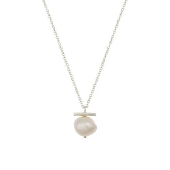 Elegant yet striking, this silver 925 necklace features a freshwater pearl sitting below a horizontal silver bar, strung on a fine chain.