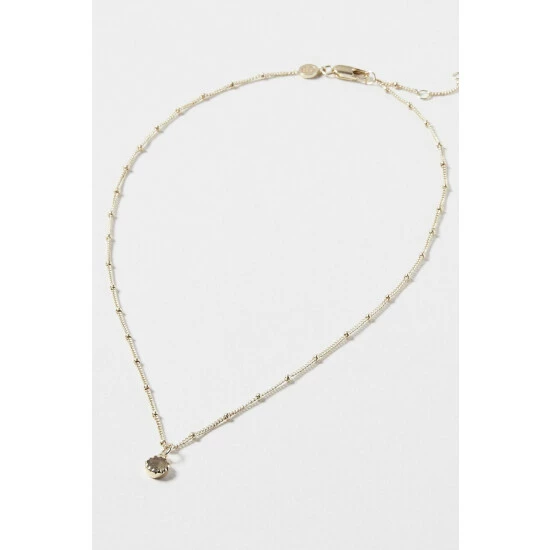 Oliver Bonas Alula Round Labradorite Drop Gold Plated Pendant Necklace