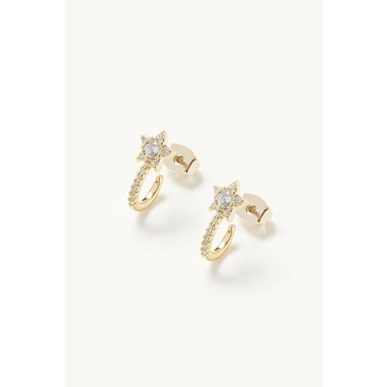 Shimmering stones cover gold-toned hoop earrings and are detailed with a star fixed below.