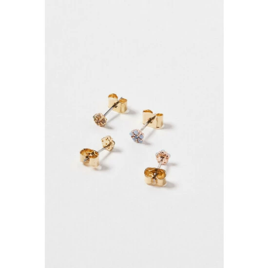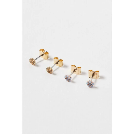 With stone details, layer your lobes with this set of two delicate floral stud earrings, complete in a golden finish and stud backs.