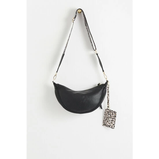 All your essentials can be as accessible as possible in the Betty Belt Bag. Whether you prefer to wear over your hips or across your shoulder, the semi-circle silhouette has a slouchy profile and the leopard print strap matches the detachable pouch for a fun pop of print.