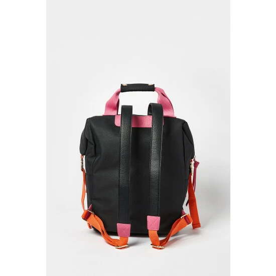 Stay hands-free whilst you’re out and about with this slouchy backpack in a neutral black tone, complemented by pink handles and orange straps for a pop of colour. With inner and outer pockets to keep your bag organised, it’s finished with gold toned metalware.