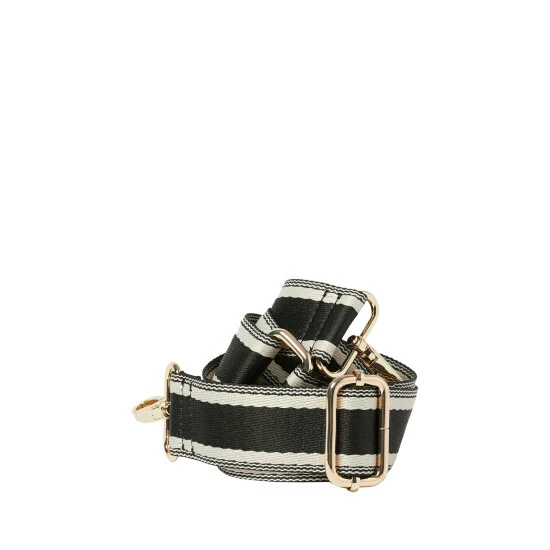 Switch up your strap with this replacement bag strap in a black and white striped pattern with gold-toned metalware.