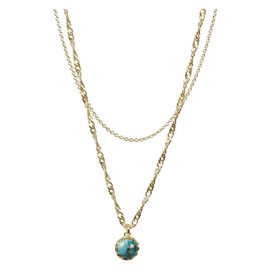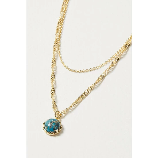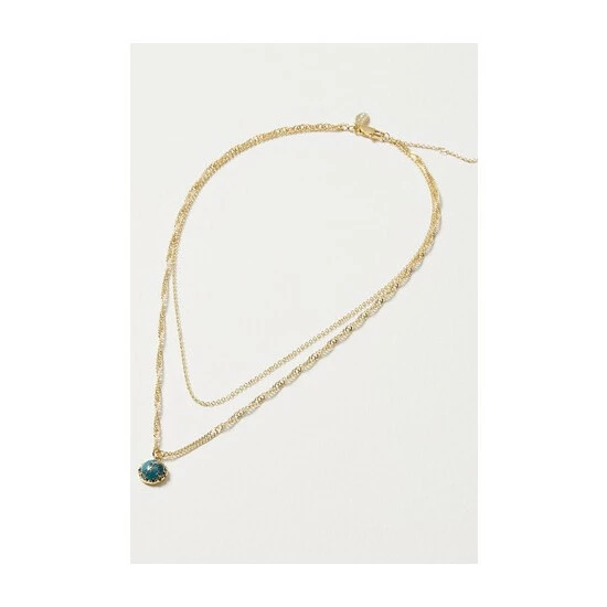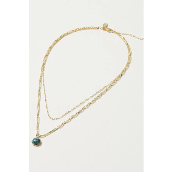 Featuring twisted and cable chains, this double row necklace is an effortless layering piece, completed with a blue stone charm.
