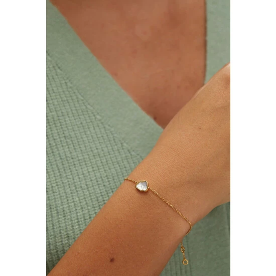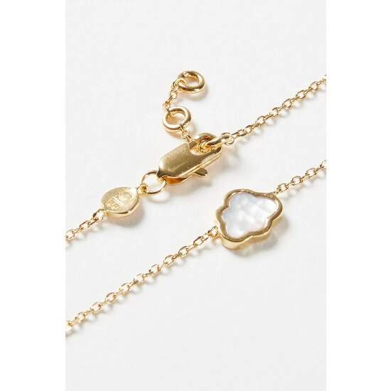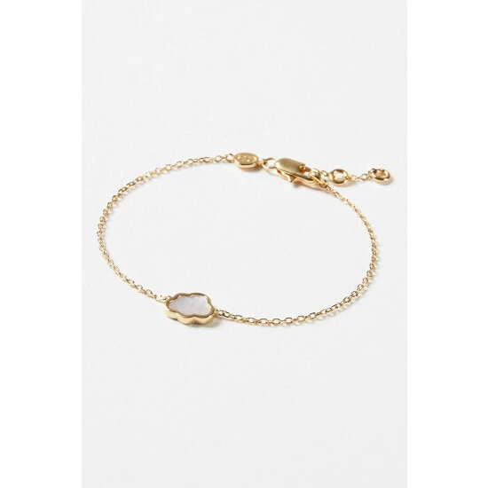 With opulent mother of pearl inlay, this chain bracelet features a delicate cloud charm set in shiny gold metal ware and is suspended from an extendable cable chain.