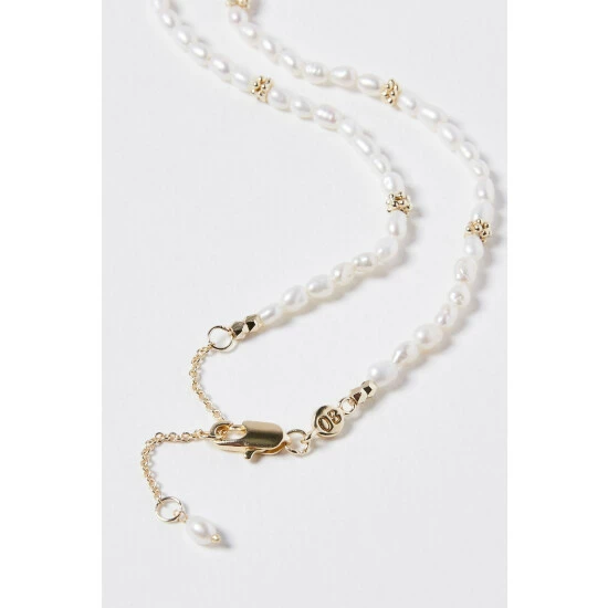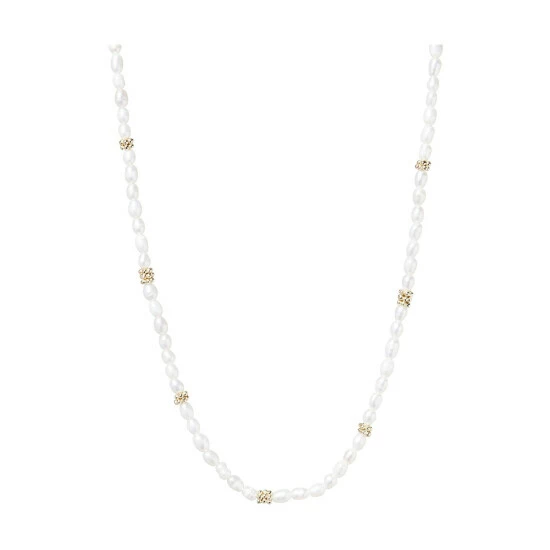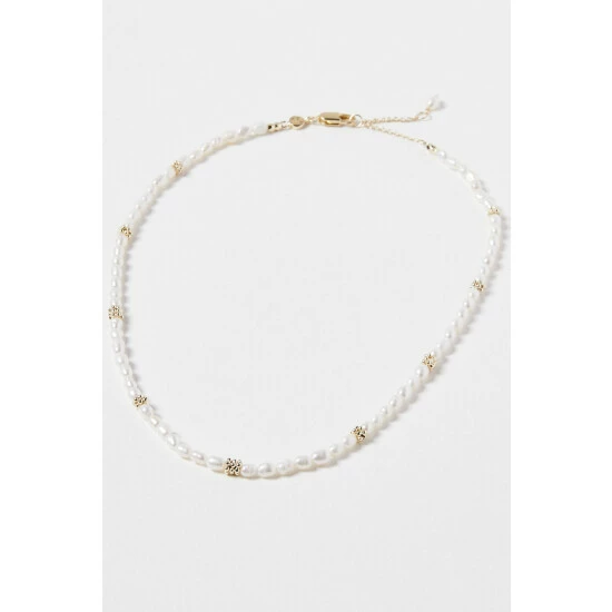 Making a dainty addition, this necklace features a pearl beading with gold-plated details, complete with an adjustable chain and lobster clasp.