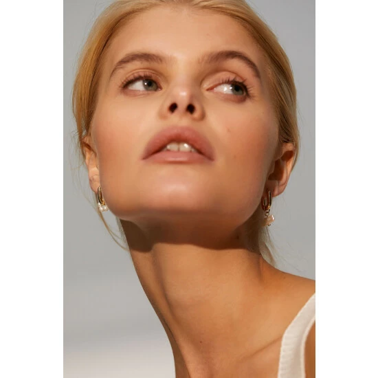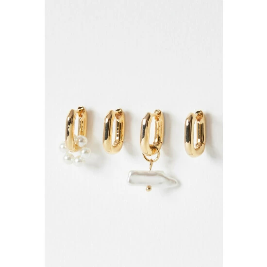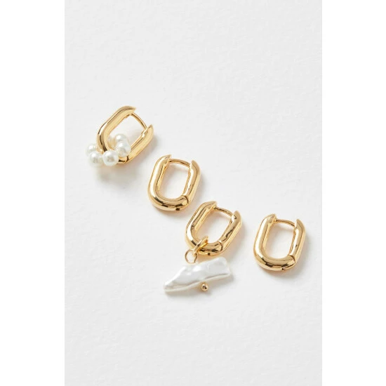 The gold-toned hoop earrings in this pack pair oval shapes with pearlescent details, complete with clicker backs.