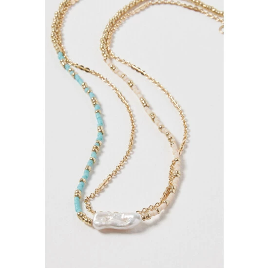 Oliver Bonas Gold Coloured Cove Mismatch Faux Pearl And Organic Drop Earrings Pack Of Four