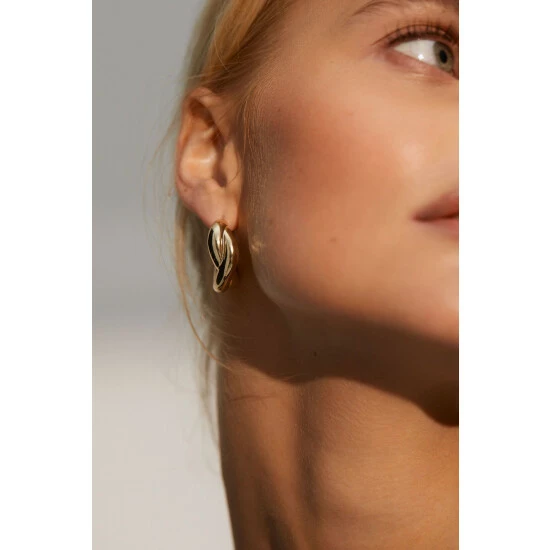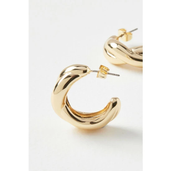 These gold-toned hoop earrings come in an intertwined shape, complete with stud backs.