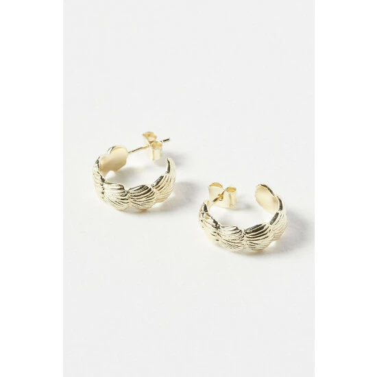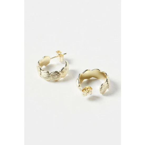 Gold-plated shells overlap one another to form an open dainty hoop, complete with stud backs.