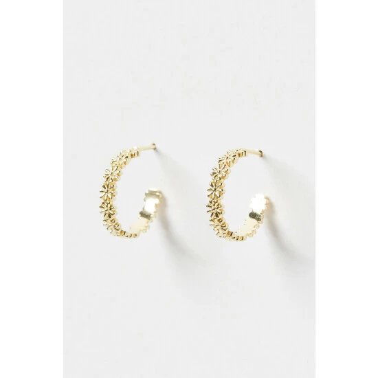 Oliver Bonas GOLD Tone Cordelia Multi Flower Casting Hoop Earrings