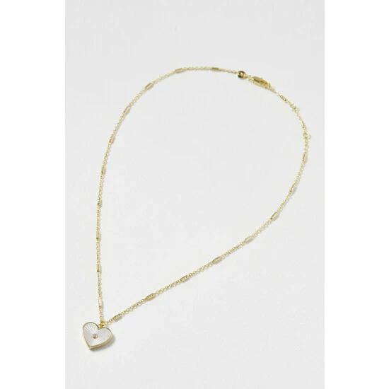 Oliver Bonas Gold Tone Kairi Engraved Mother Of Pearl Heart Drop Pendant