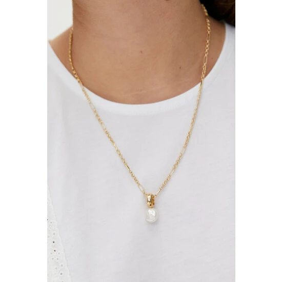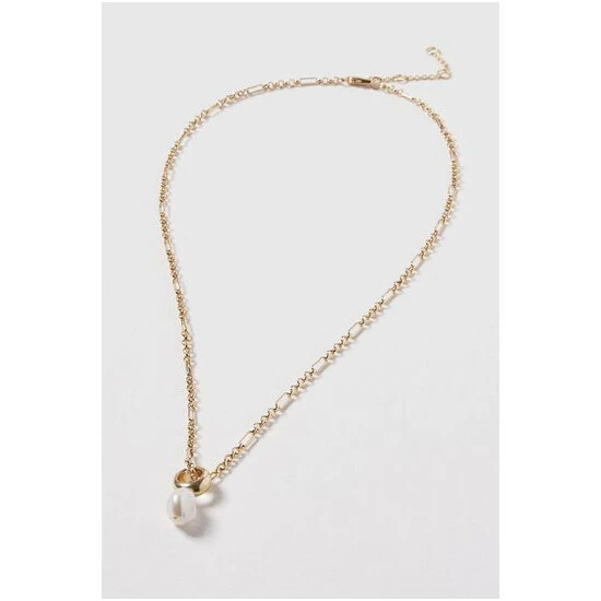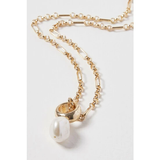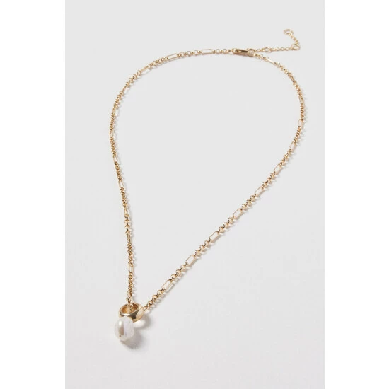 Anchored by a pearl drop and chunky round loop, this pendant necklace features a link chain with an extendable length and lobster clasp fastening.