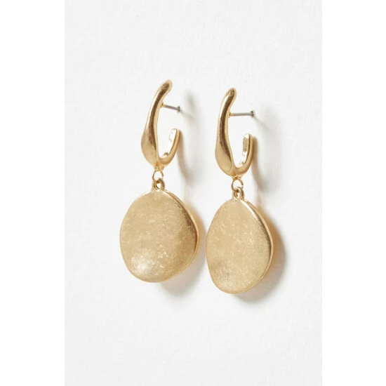 Anchored by gold-toned discs in a matte finish, these drop earring feature small organic-shaped bars and butterfly back fastenings.