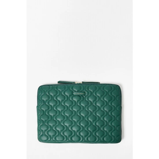 In a 60s-inspired stitch detail pattern, this green card laptop case has a double zip fastening and gold-tone metalware.
