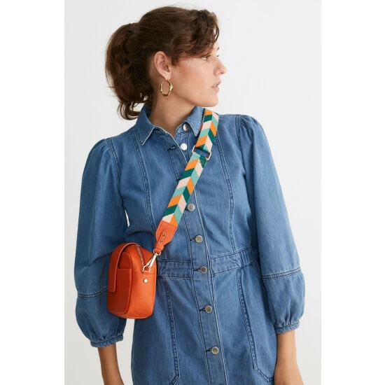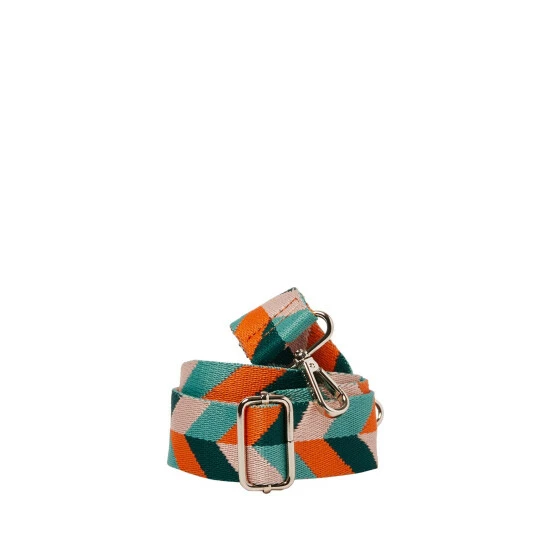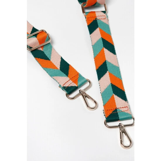 Combining summer fruit tones, this orange, green and pink chevron pattern bag strap is a summer essential. Complete with gold-toned metalware, this strap has an adjustable length.