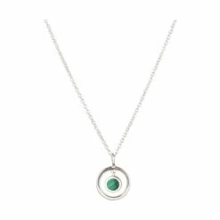 With a green stone suspended inside a silver hoop, this 925 silver pendant necklace is finished with an extendable chain and spring ring clasp.
