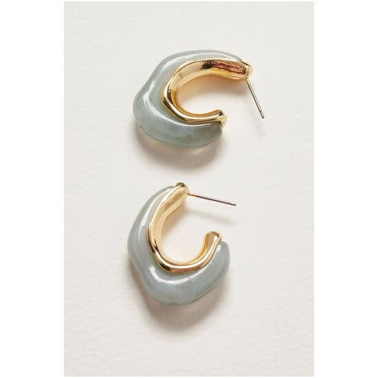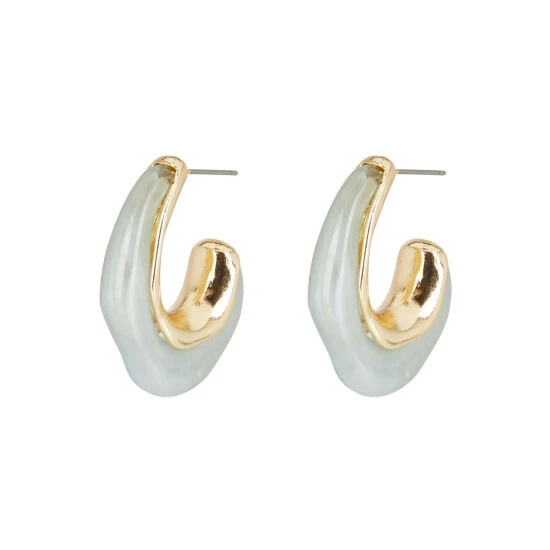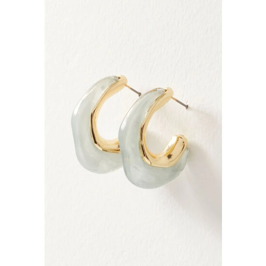 In an organic wave shape, these statement light green acrylic hoops are contrasted with a gold-toned lining and sit on stud backs.
