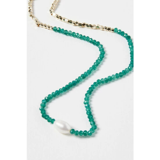 Oliver Bonas Green Geila Beaded Jade Gold Plated Necklace