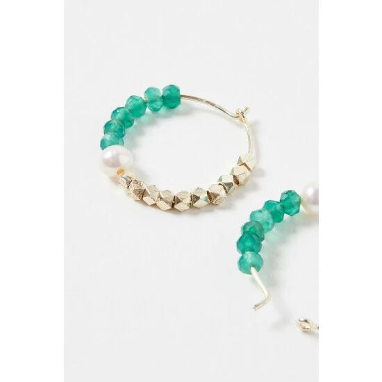 Oliver Bonas Green Geila Beaded Wire Pearl Gold Plated Hoop Earrings