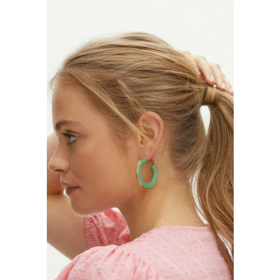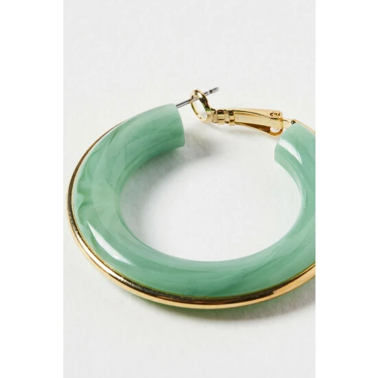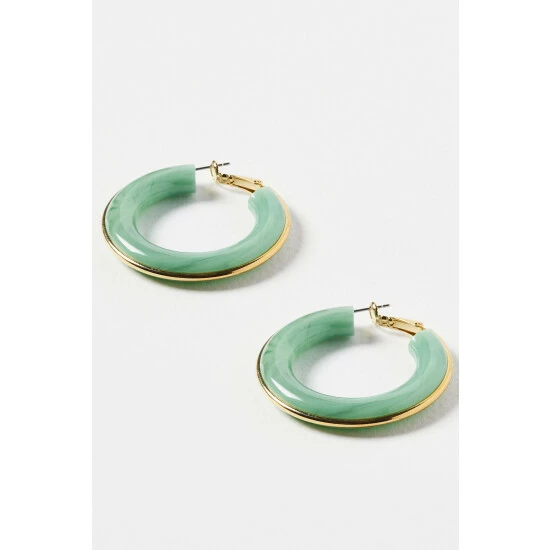 Update your favourite pair of earrings by adding the touch of green resin in these chunky hoops, complete with gold toned hardware and latch backs.