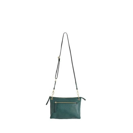 For a stylish yet practical addition to your accessories, this crossbody bag features a rectangular triple pocket design in black, green and metallic tones. Featuring an adjustable, detachable strap and gold-toned eyelet detailing, this bag is completed with a zip fastening.