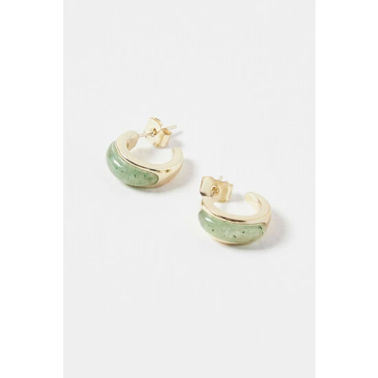 A speckled green aventurine stone inlay holds centre stage on these chunky gold plated hoop earrings.
