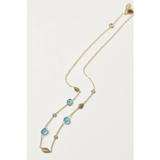 Featuring a floral, leaf and blue stone design, this gold toned chain necklace is complete with an extendable length and lobster clasp fastening.