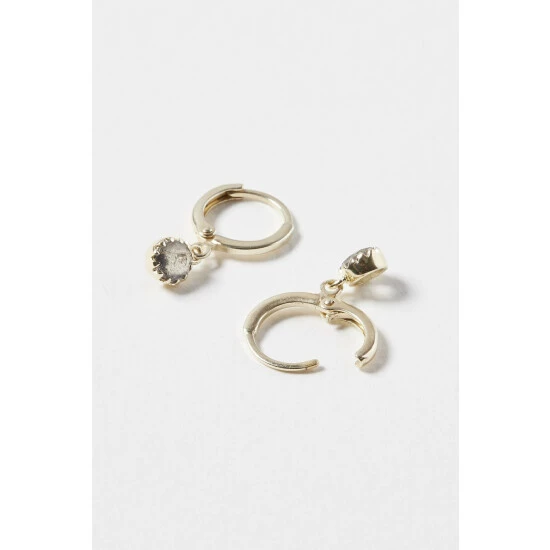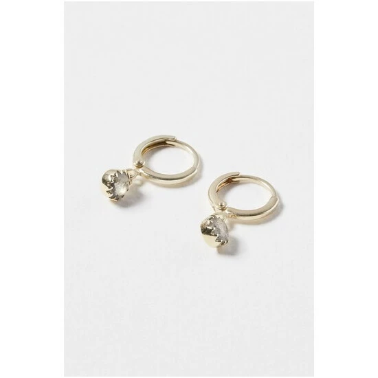 Oliver Bonas Grey Alula Round Labradorite Drop Labradorite, Gold Plated Brass Huggie Earrings