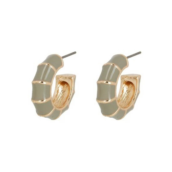 These mini gold-toned earrings combine a bamboo design with a sage green enamel coating, complete with stud backs.