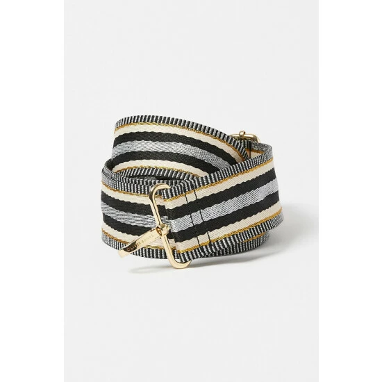 Switch up your strap with this replacement bag strap in gold, silver and black striped pattern with gold-toned metalware.