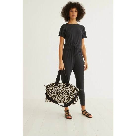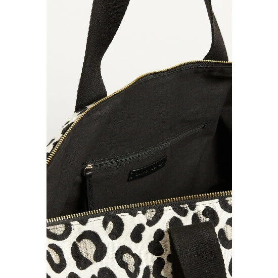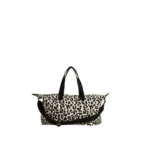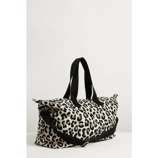 In a spacious silhouette, this leopard print weekend bag has a large compartment and inner, zipped compartment for your smaller essentials, completed with shoulder straps and a detachable cross-body strap.