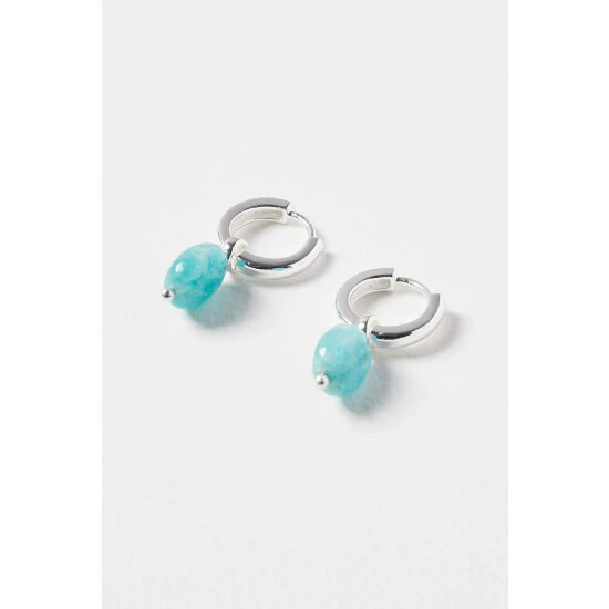 Oliver Bonas Lucia Blue Chunky Sterling Silver Hoop And Oval Amazonite Drop Hoop Earrings