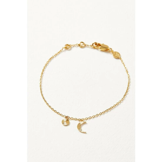 Oliver Bonas Luna Engraved Moon & Disc Gold Plated Brass Bracelet