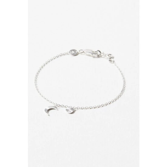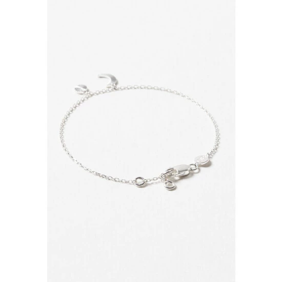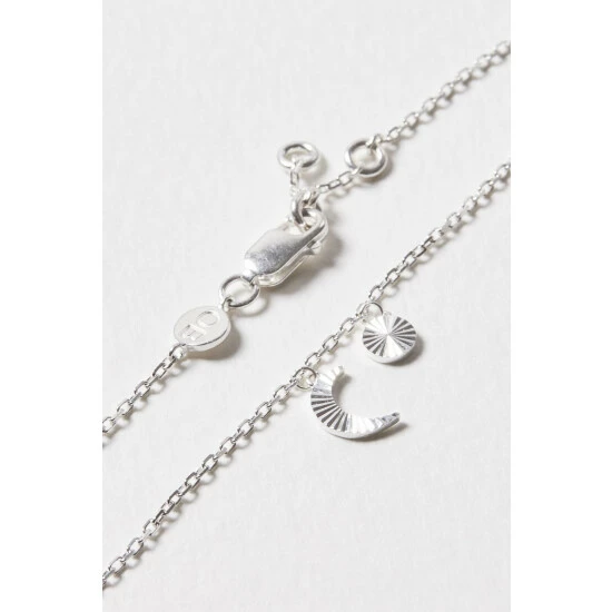 Oliver Bonas Luna Engraved Moon & Disc Sterling Silver Chain Bracelet
