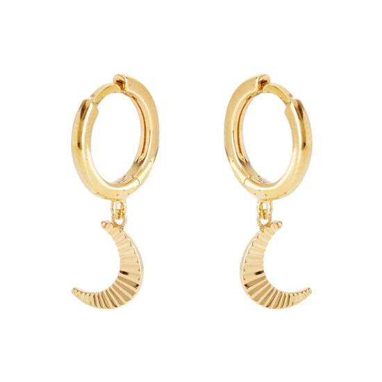 Oliver Bonas Luna Engraved Moon Gold Plated Brass Drop Huggie Earrings
