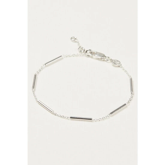 Delicate bars secured to fine chains detail this silver 925 bracelet, completed with a high shine finish and an extendable length.