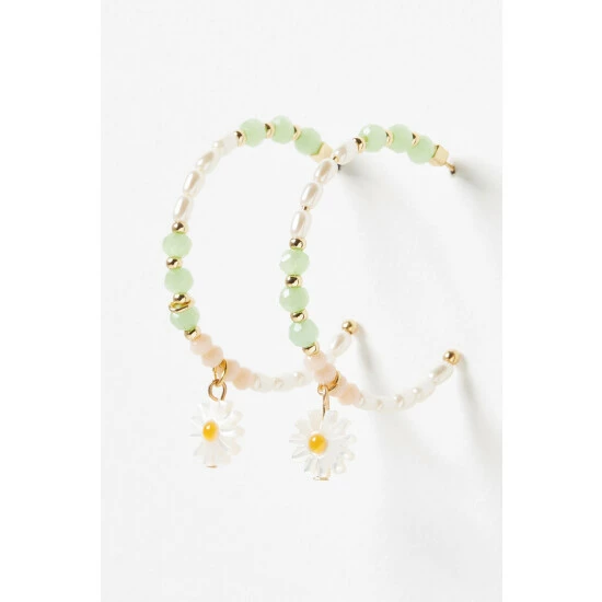 Pairing on-trend beading with a classic hoop silhouette, these statement hoop earrings feature pastel-toned embellishments and faux pearls, finished with a daisy charm and stud backs.