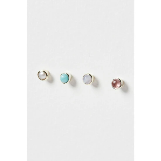 Oliver Bonas Multi Oriana Semi Precious Stone Inlay Mixed Shape Pack Of Four Stud Earrings