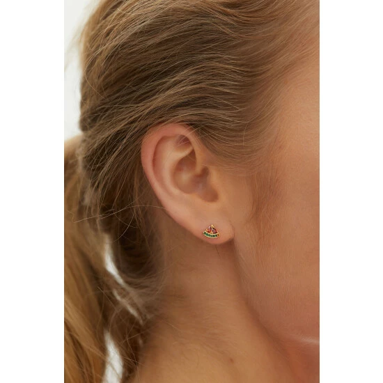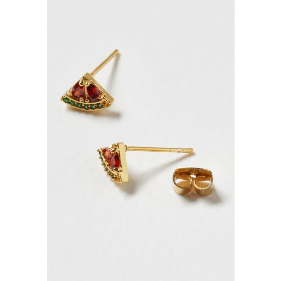 Add a fruity twist to your ear stack with these watermelon slice stud earrings, featuring delicate gem inlay and gold toned metalware.