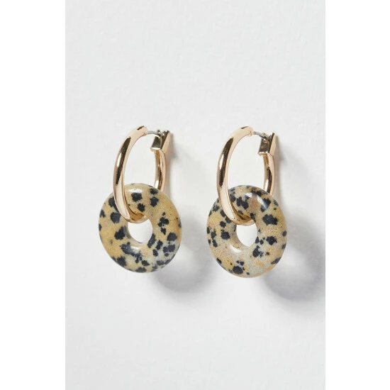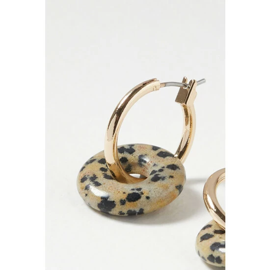 Oliver Bonas Natural Alaia Interlinked Hoop And Speckled Stone Hoop Earrings