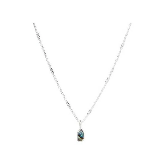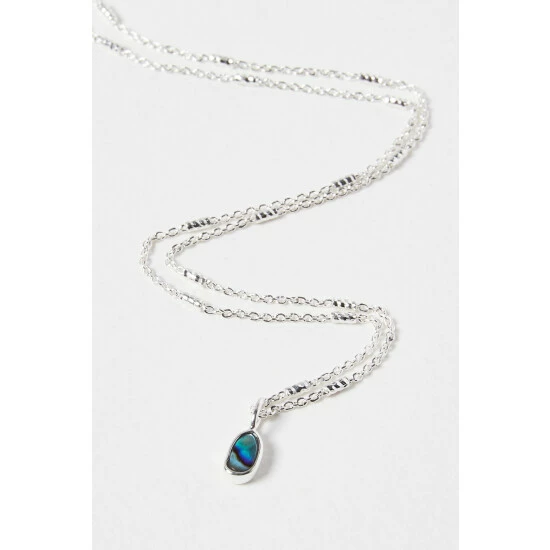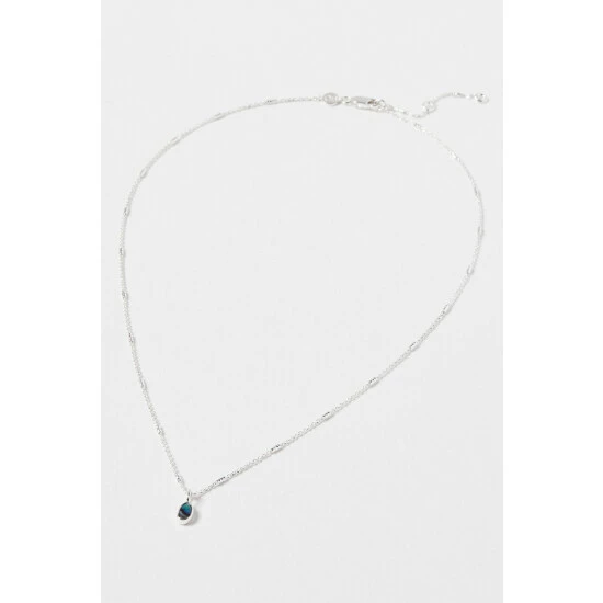 Oliver Bonas Natural Blythe Pebble Charm Paua Shell Silver Coloured Pendant Necklace
