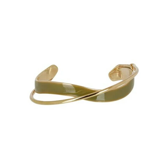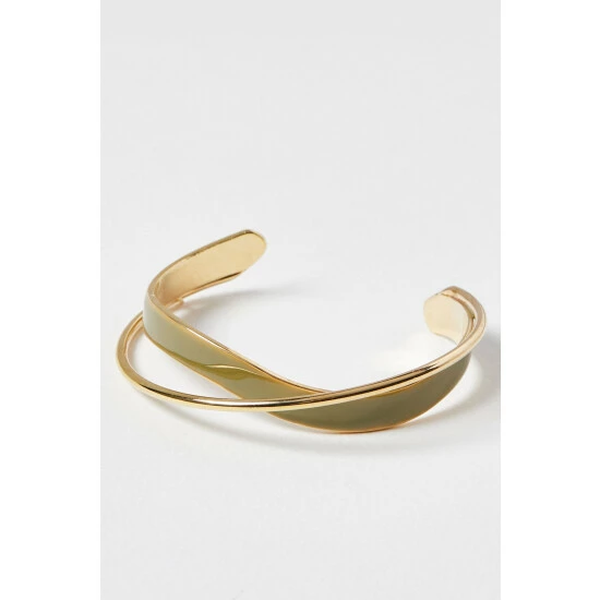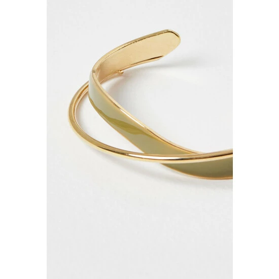 This gold-toned cuff bangle features two overlapped bands with a natural enamel coating.