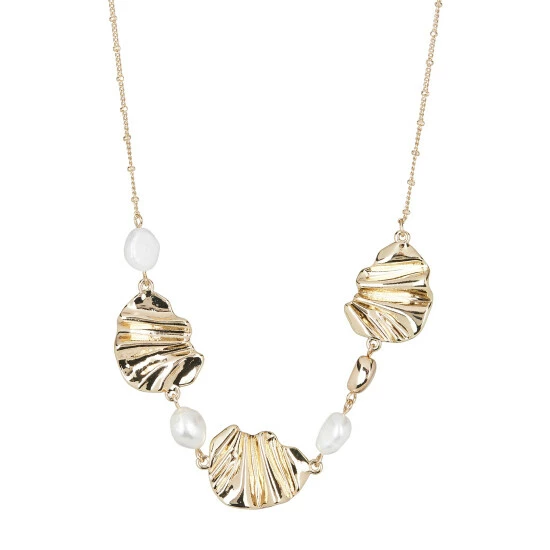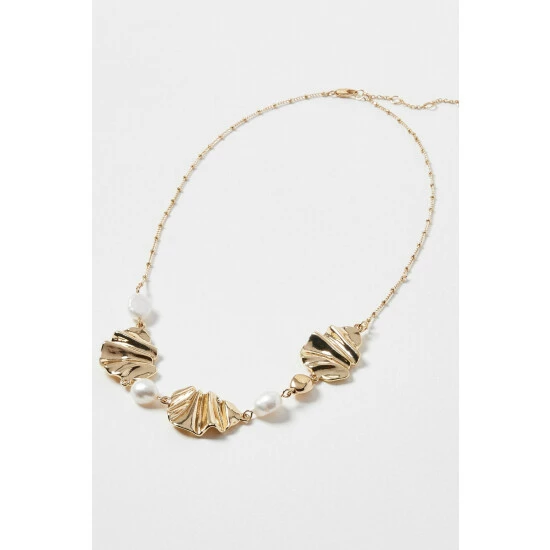 Oliver Bonas Natural Indie Pearl & Textured Metal Shape Short Necklace