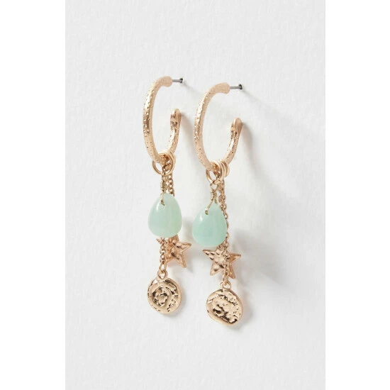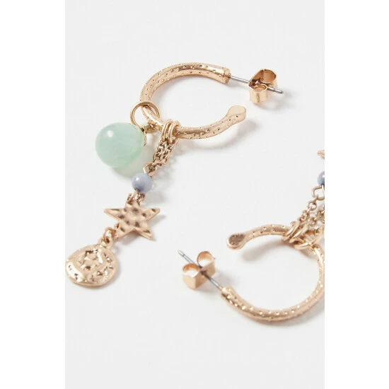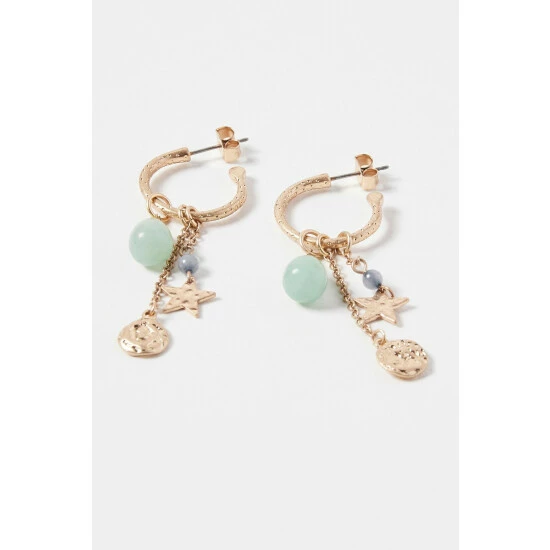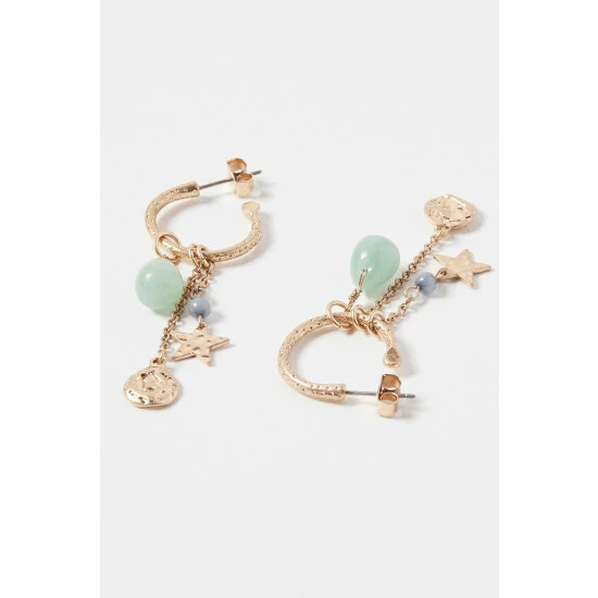 These gold-toned stud earrings feature small hoops with star and disc charm drop, complete with stud backs.