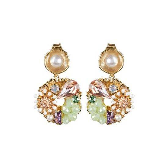 Add a touch of elegance to your selection of jewellery with these drop earrings. Featuring a stud back, the earrings have an arrangement of glass beads and gems set on a gold-toned drop disc.