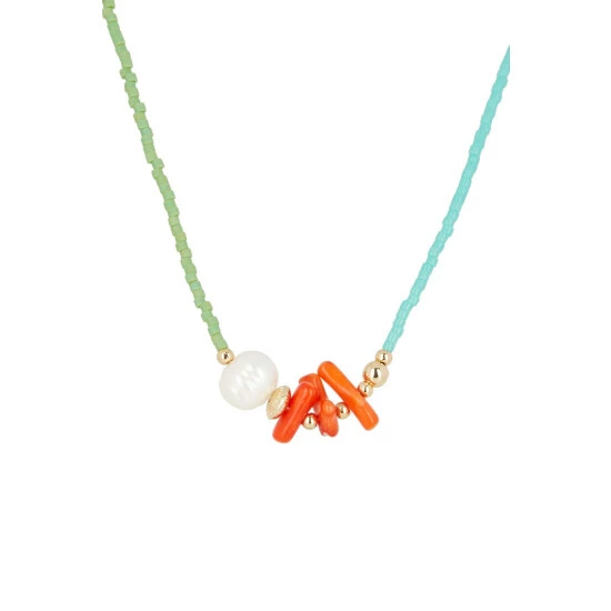 Oliver Bonas Natural Nara Seed Bead Pearl And Stone Chips Necklace